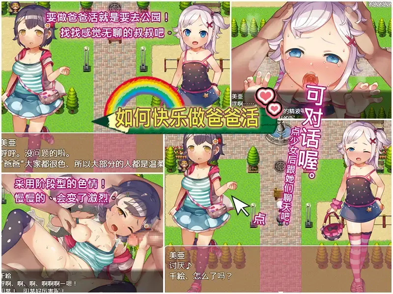 操控女孩、去找公园内的爸爸跟他们对话、此游戏是做爸爸活做爱的开心游戏。