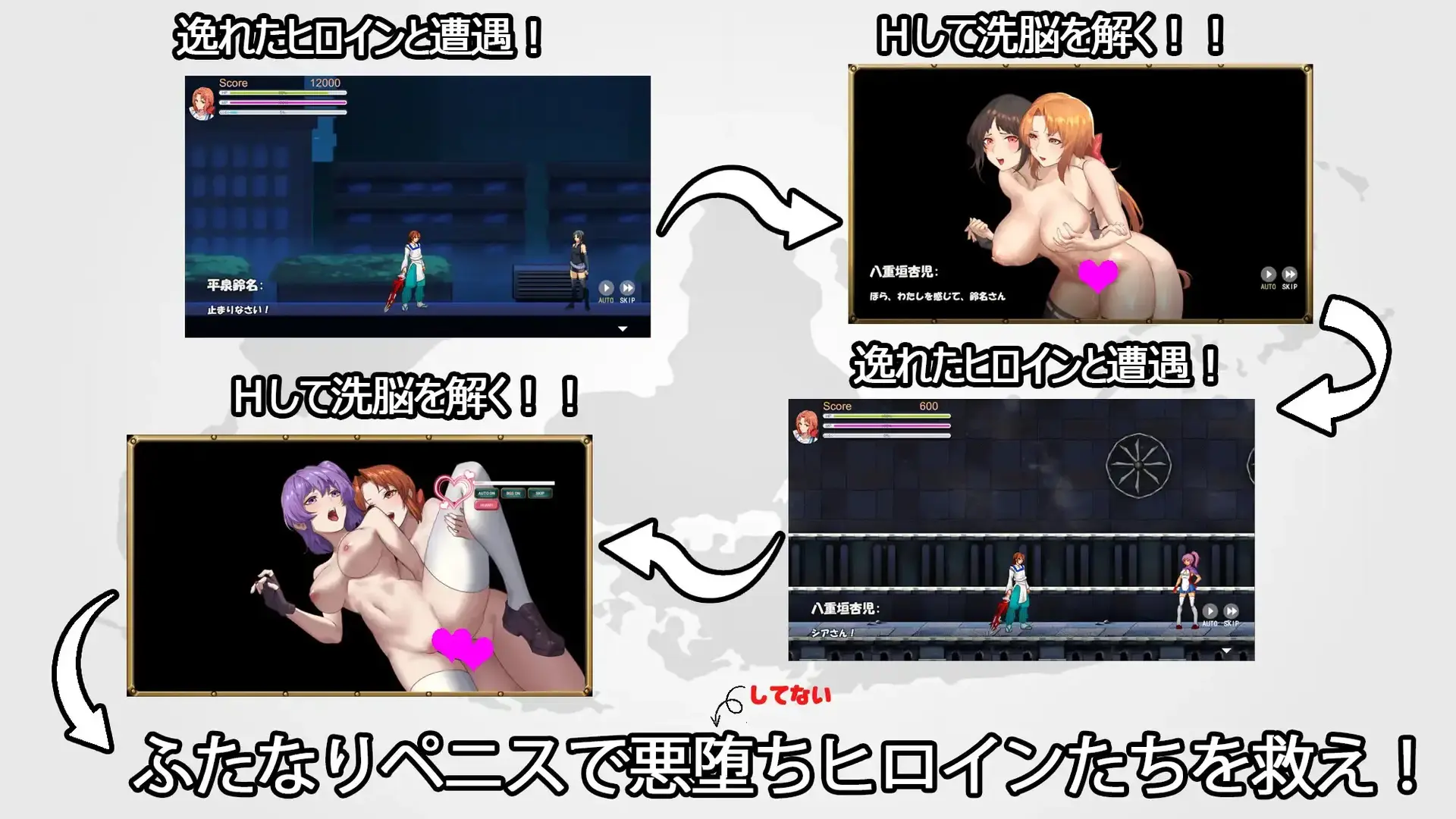 游戏共有七个关卡,击败每个Boss女都会出现一段性爱场景。