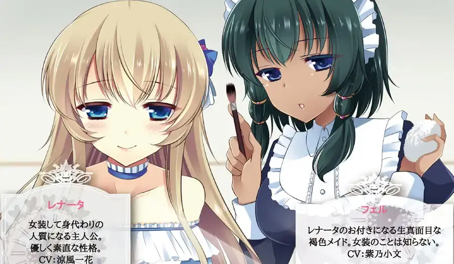 主人公·雷纳托女装代替异母妹妹成为人质,以“雷纳塔”的身份在领主宅邸过着被囚的日子。能否忍受卫兵的恶作剧,躲避媚药的迷醉与恐惧,以男子身份达成目的?还是……身份与女装暴露,被当作“可爱的男孩子”对待? 关键想必掌握在随侍的褐色女仆手中。有点危险的妄想男子向正统派戏剧女装故事。