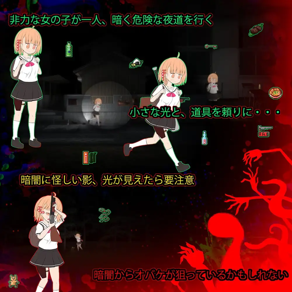 ·地图有学校、乡下小镇、乡下小路、废墟、山道、神社等。随着游戏推进,