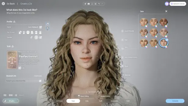 通过 250 多种自定义选项,对头发、皮肤、体型、服装、配饰、美甲造型等方面进行调整,设计出独一无二的 Zoi。